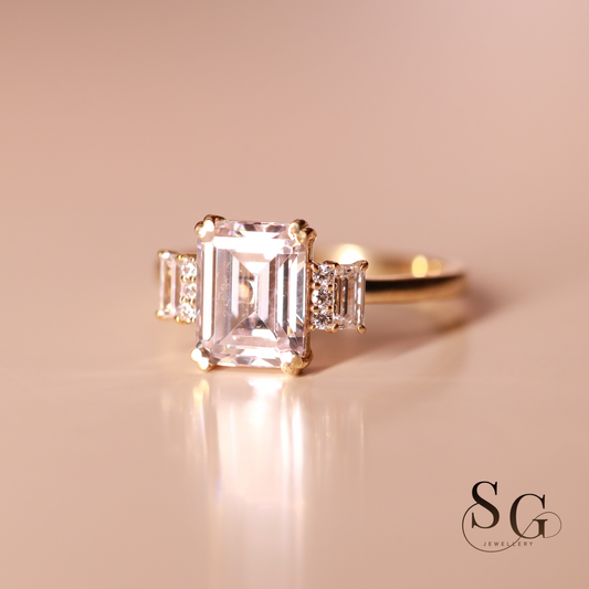 Verlobungsring mit im Labor gezüchteten Diamanten im Smaragdschliff