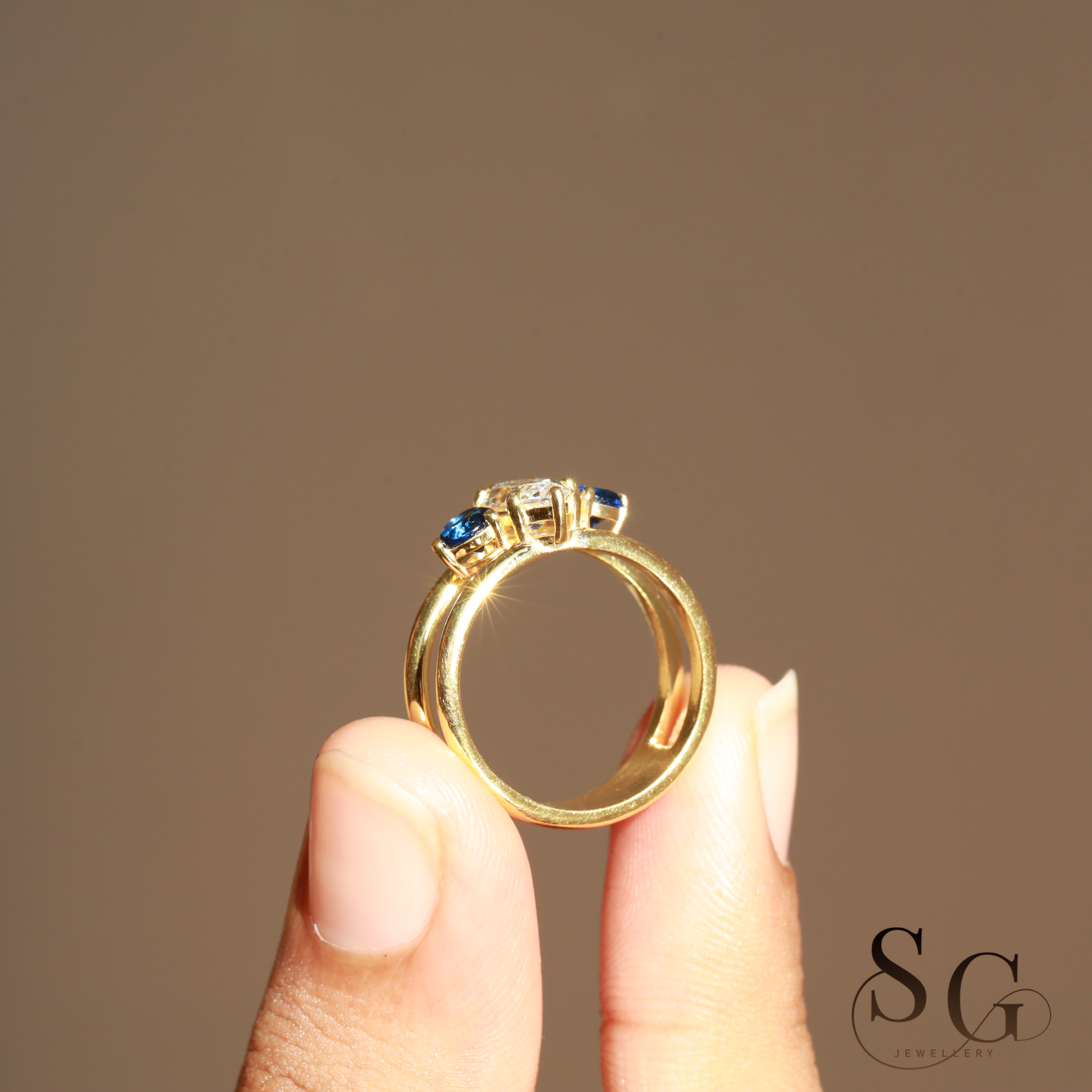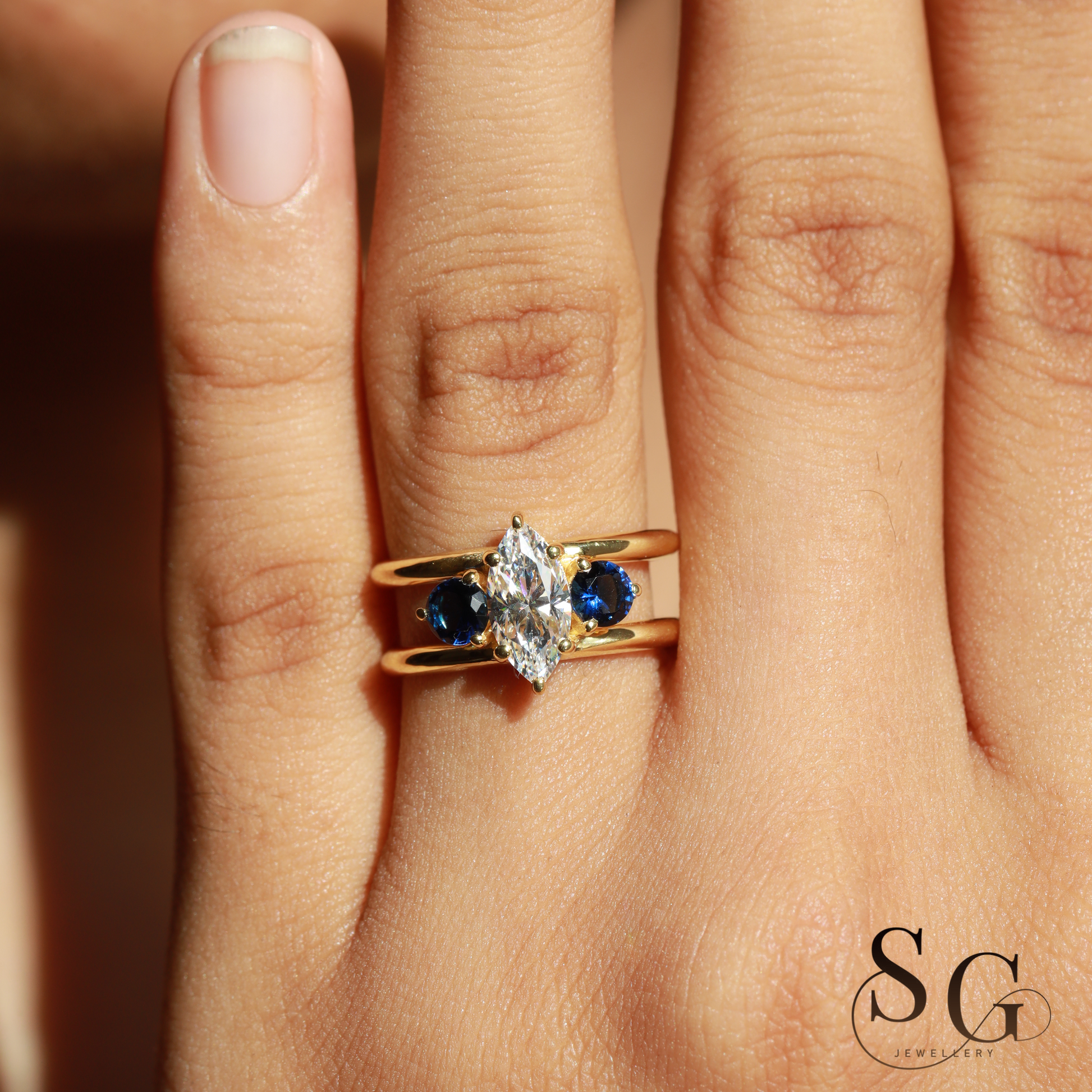 FIND NOWI am absolutely in love with this beautiful ring! The combination of the marquise-cut diamond and the deep blue gemstones creates a striking and unique look. The gold bands are sleek and perfectly complement the stones, adding a touch of elegance. It fits comfortably, and the craftsmanship is impeccable. This ring is truly a statement piece, perfect for both daily wear and special occasions. Highly recommend it to anyone looking for a blend of sophistication and uniqueness