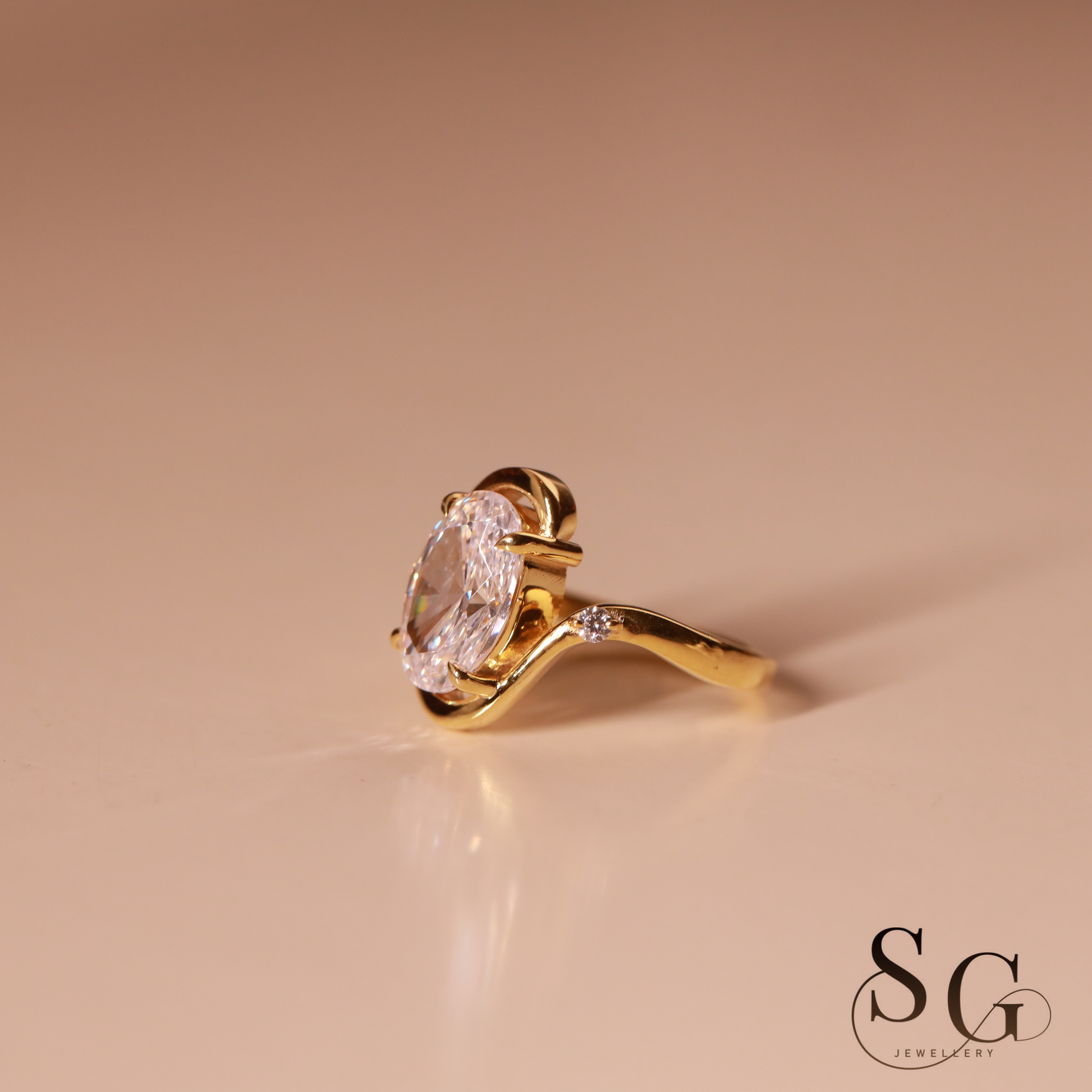 Verlobungsring mit ovalem, im Labor gezΓΌchteten Diamanten im Schliff von 3,00 Karat