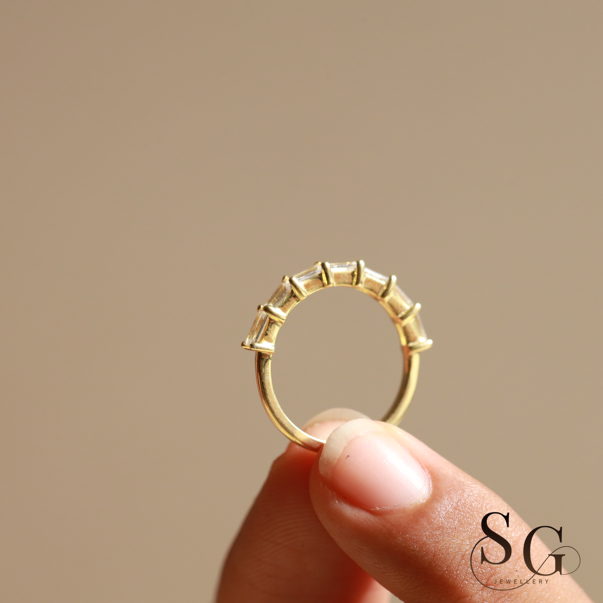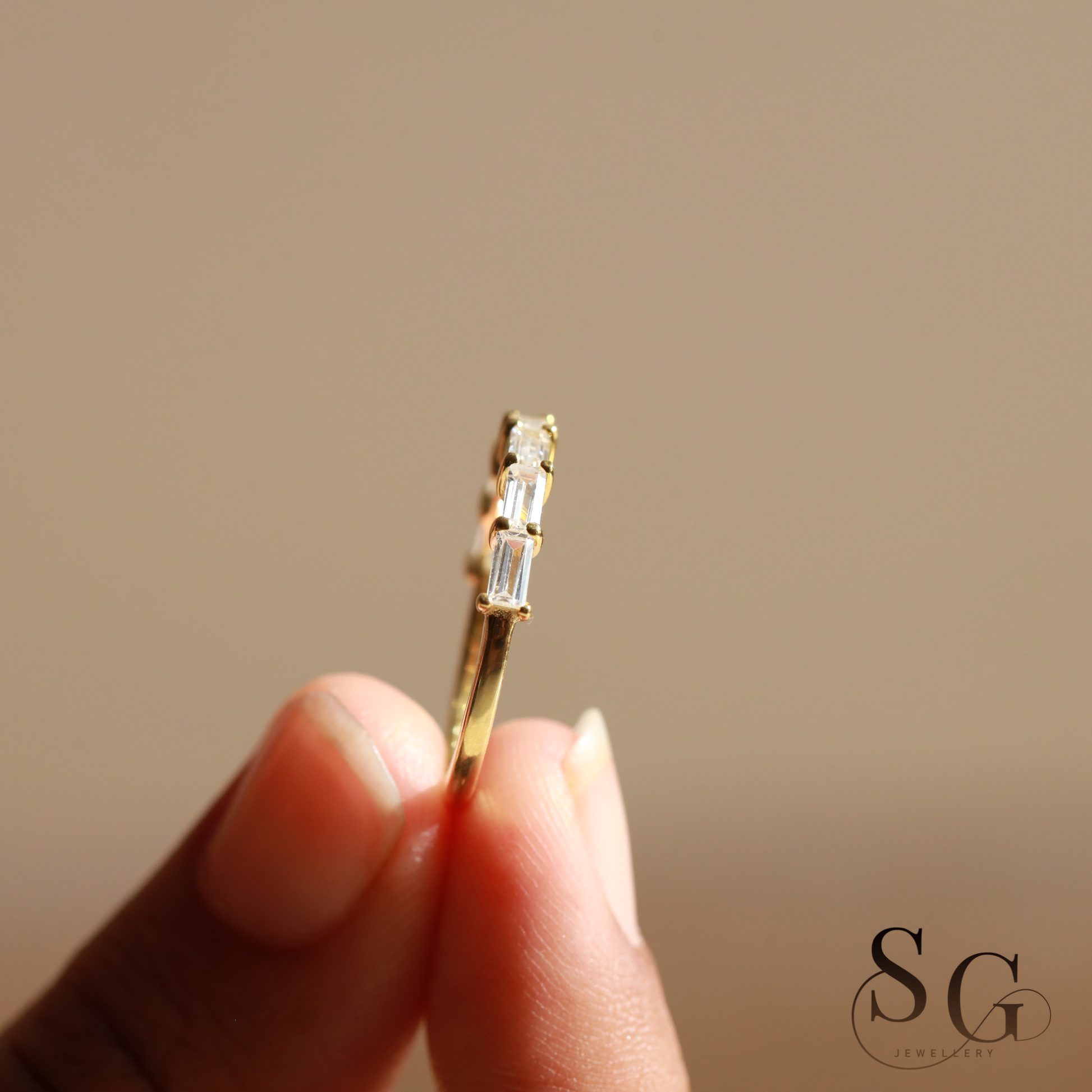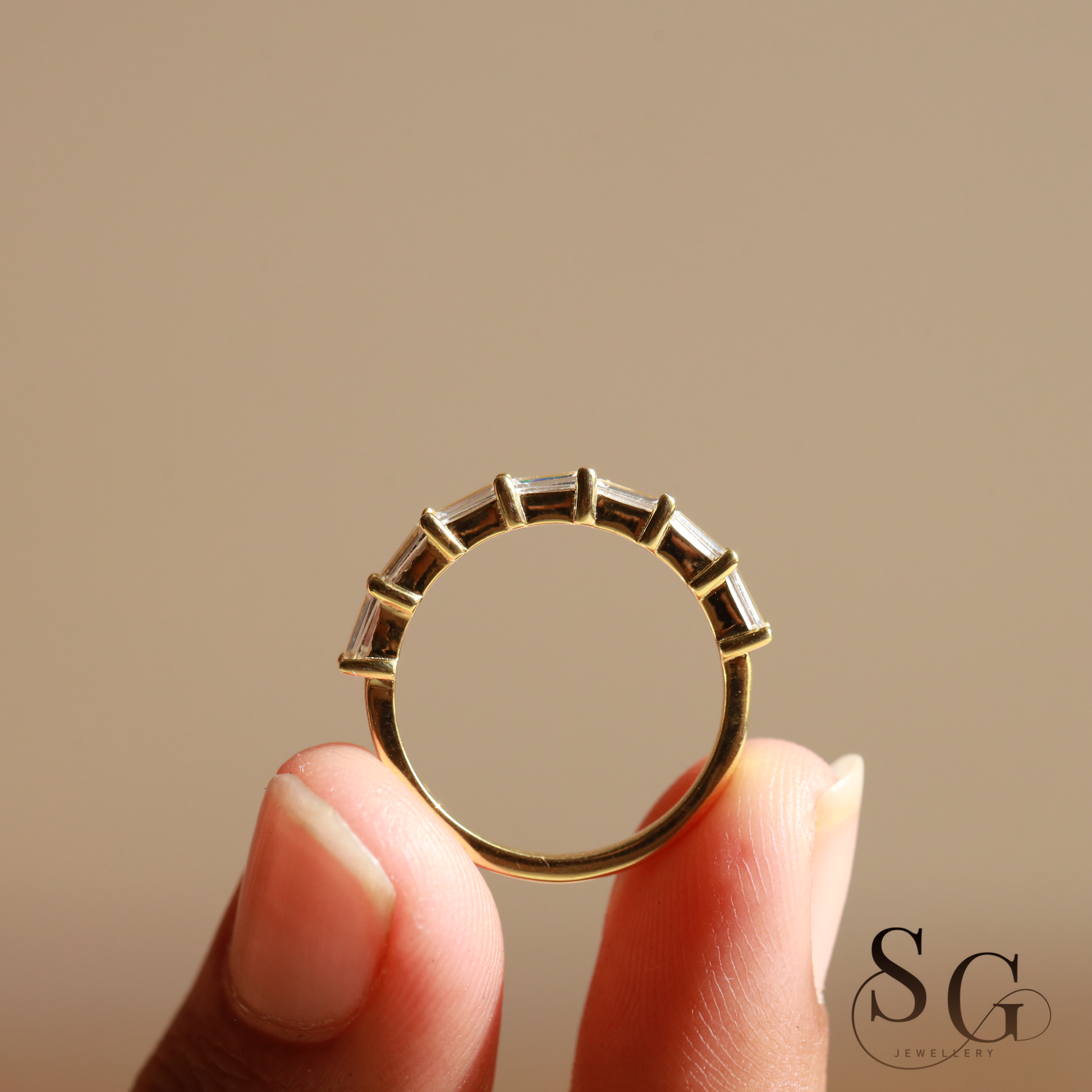 Minimalistischer Halbbandring, 1,29 Karat farbloser Labordiamant im Baguetteschliff