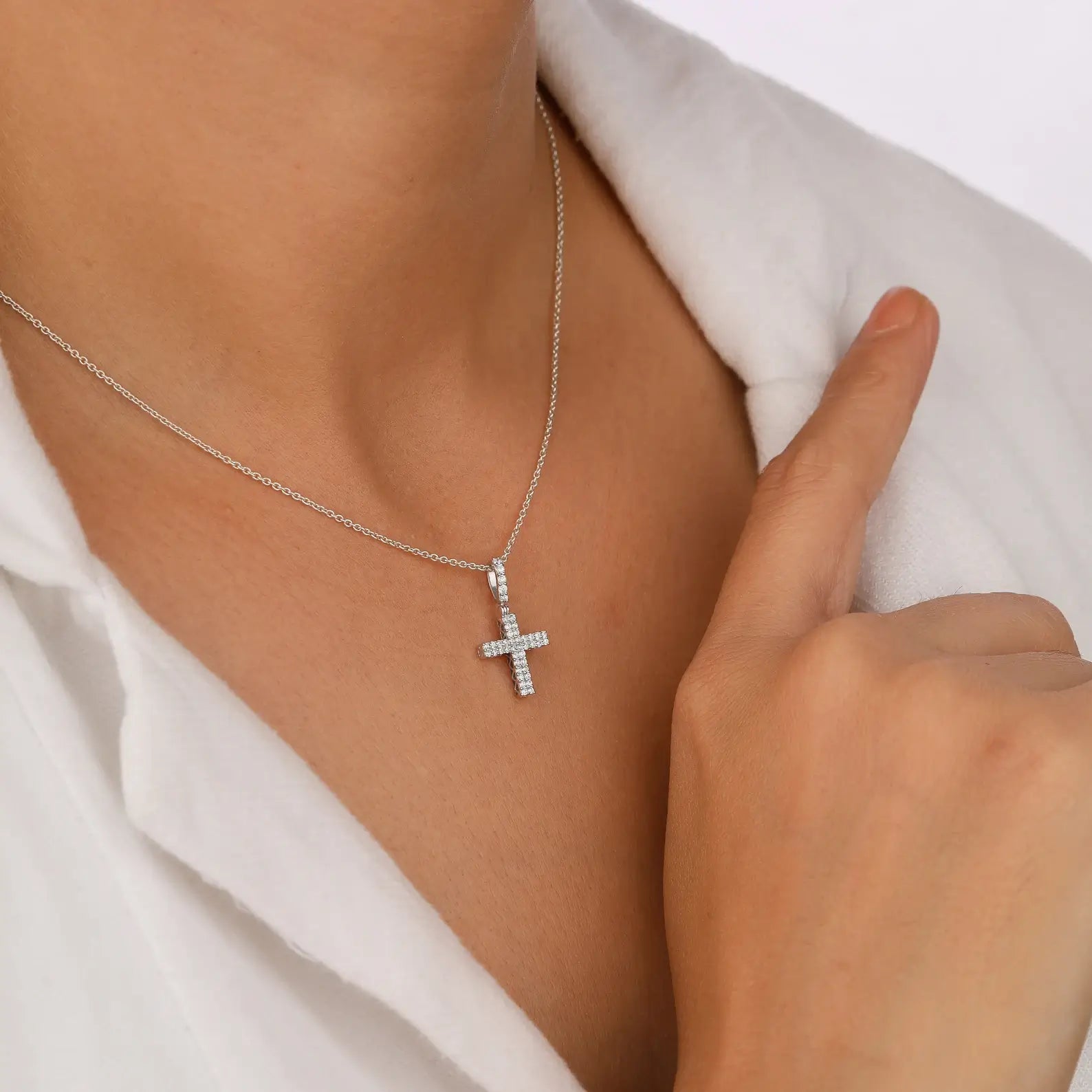 Kleiner Kreuzanhänger mit Labordiamanten für religiöse Anlässe