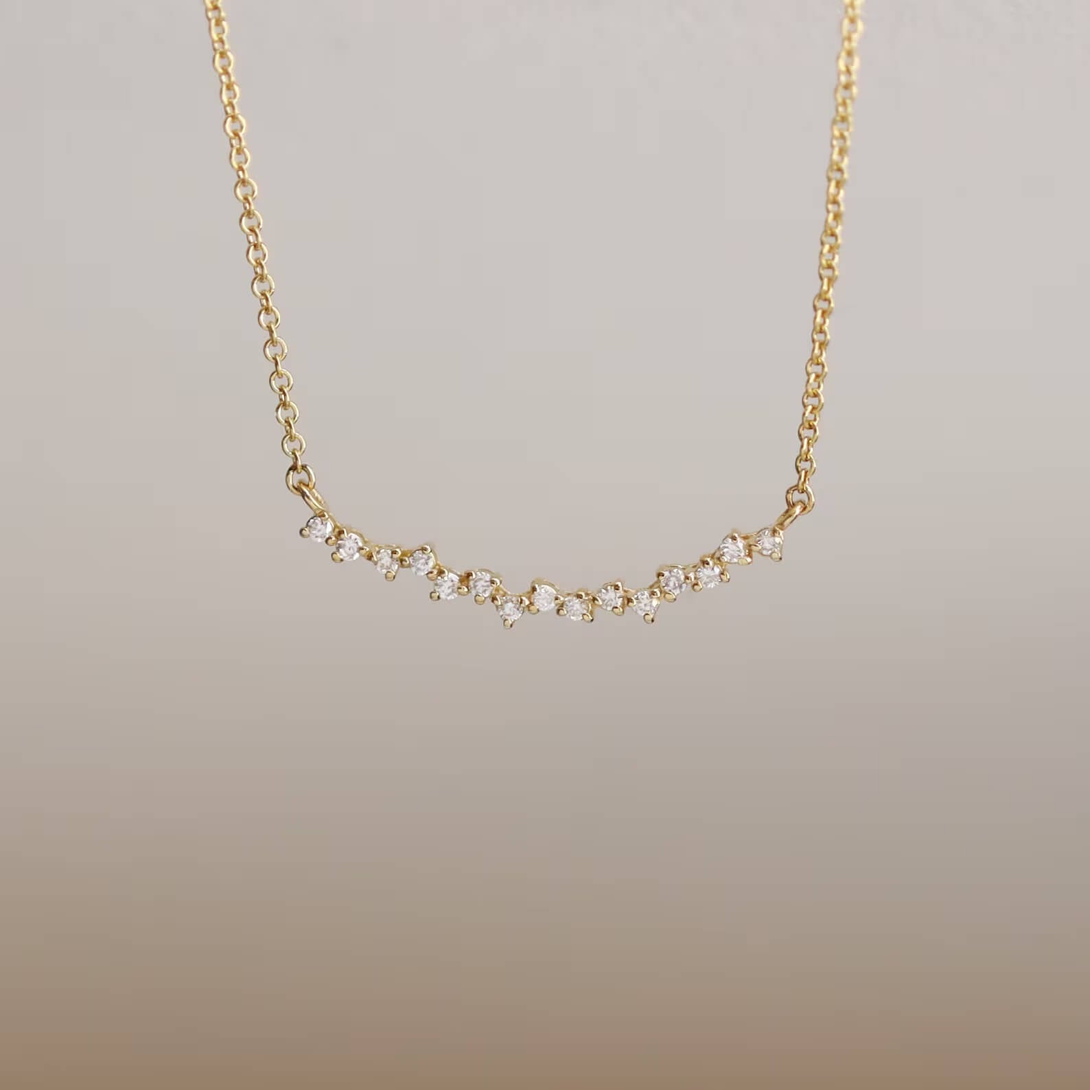 Die geschwungene Diamant-Cluster-Halskette aus 14-karätigem Gold ist ein ideales, einzigartiges Geschenk für sie. Sie besticht durch ein atemberaubendes Diamant-Cluster-Design. Im Labor gezüchtete Diamant-Halsketten bieten die gleiche Brillanz und Qualität wie ihre im Bergbau gewonnenen Pendants und sind gleichzeitig eine umweltbewusste Wahl. Dank der hochwertigen Fassung aus 14-karätigem Gold ist diese Halskette zudem langlebig.