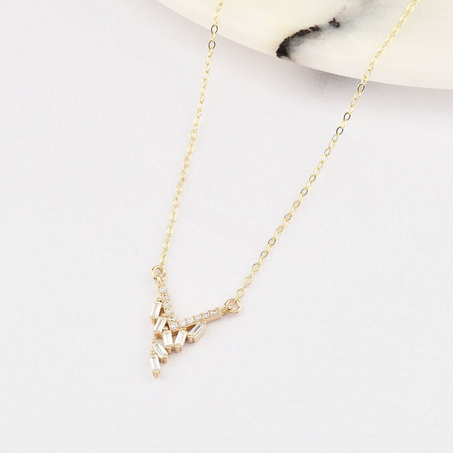 Die Baguette-Halskette aus 14-karätigem Gold mit im Labor gezüchteten Diamanten ist mit viel Liebe handgefertigt und perfekt als Geschenk für Brautjungfern, Hochzeiten, Jubiläen und mehr. Sie ist meisterhaft gefertigt und garantiert langlebige Qualität mit einer 30-tägigen Zufriedenheitsgarantie. Investieren Sie in ein Schmuckstück, das Sie jahrelang lieben werden.