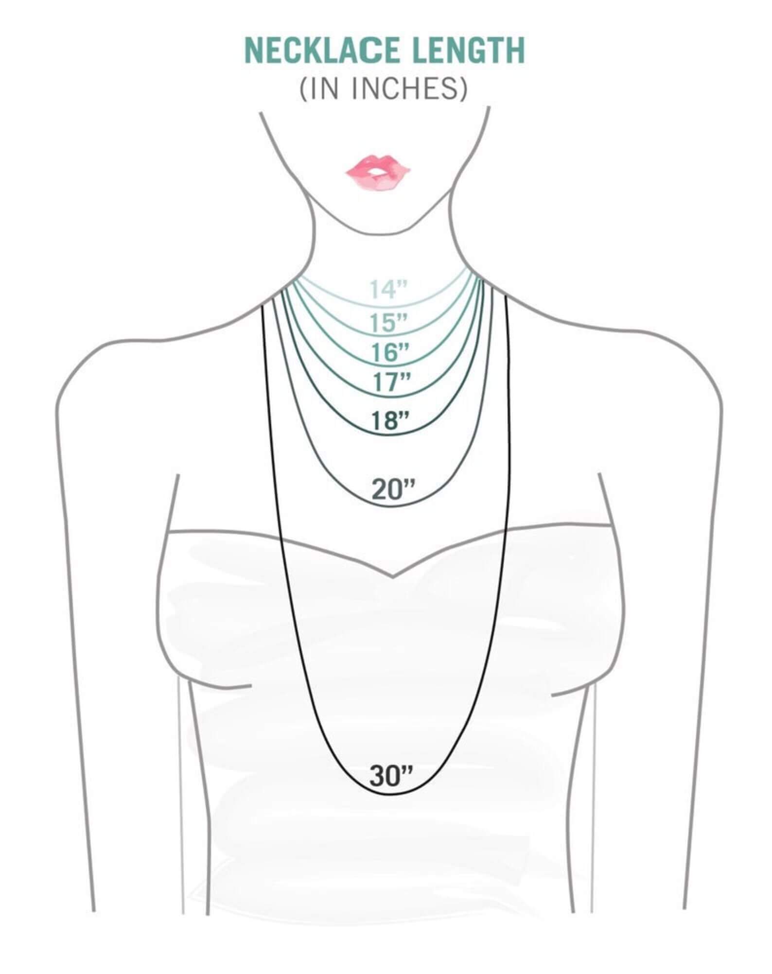 ↣ Verfügbare Halskettenlängen: 18 Zoll, 17 Zoll, 16 Zoll, 15 Zoll, 14 Zoll.