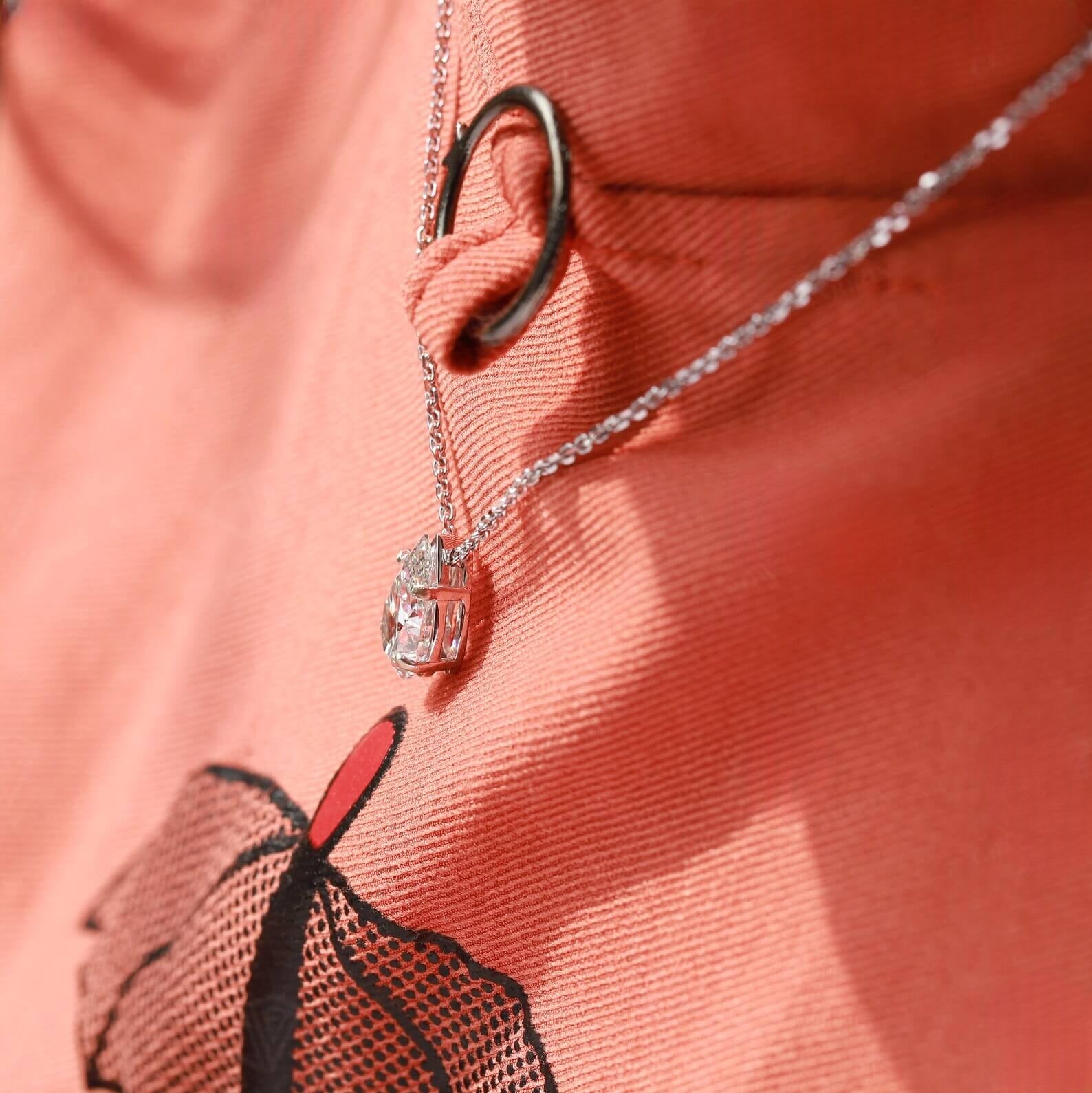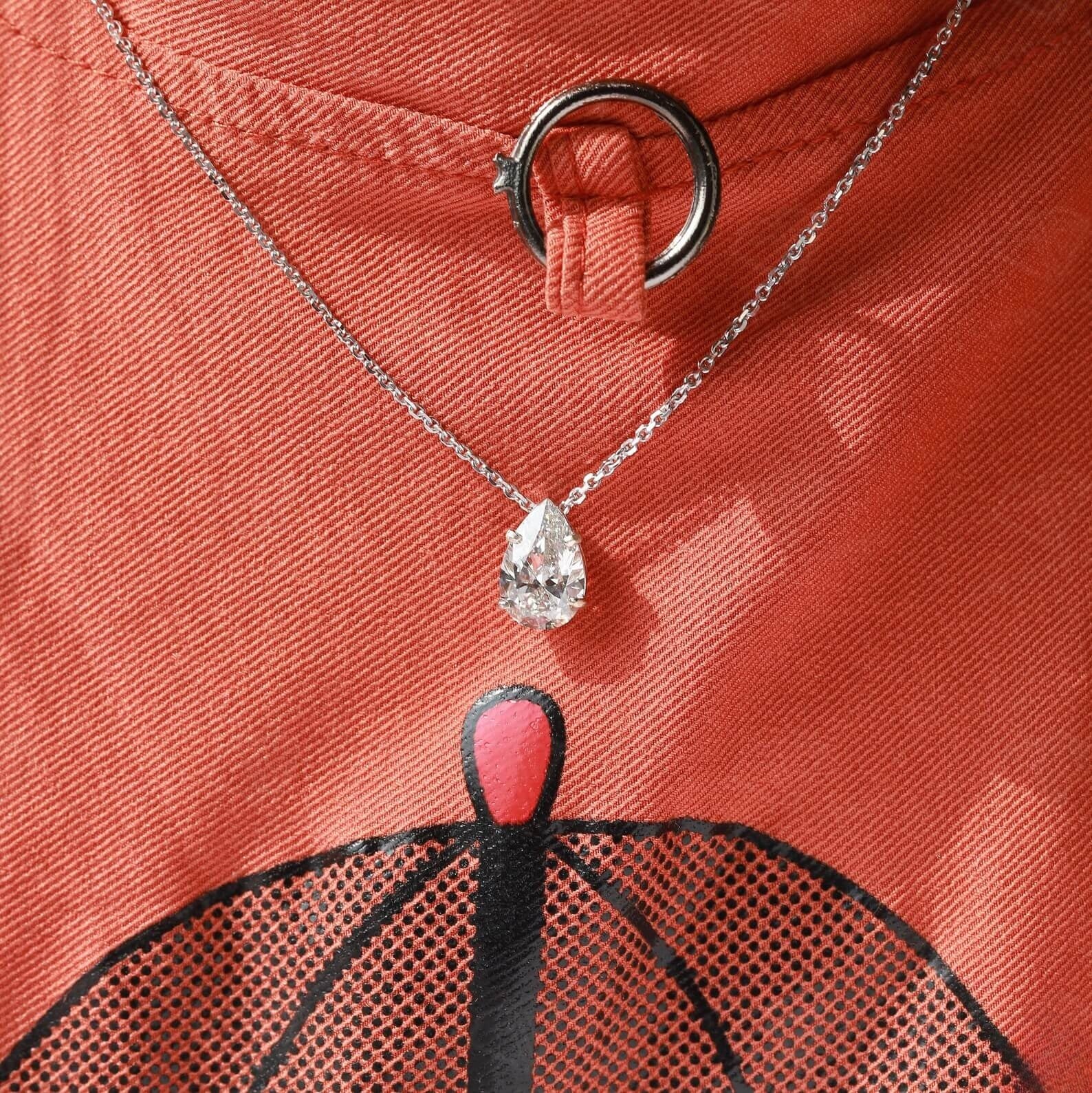 Glitzernde Solitär-Diamantkette im Tropfenschliff