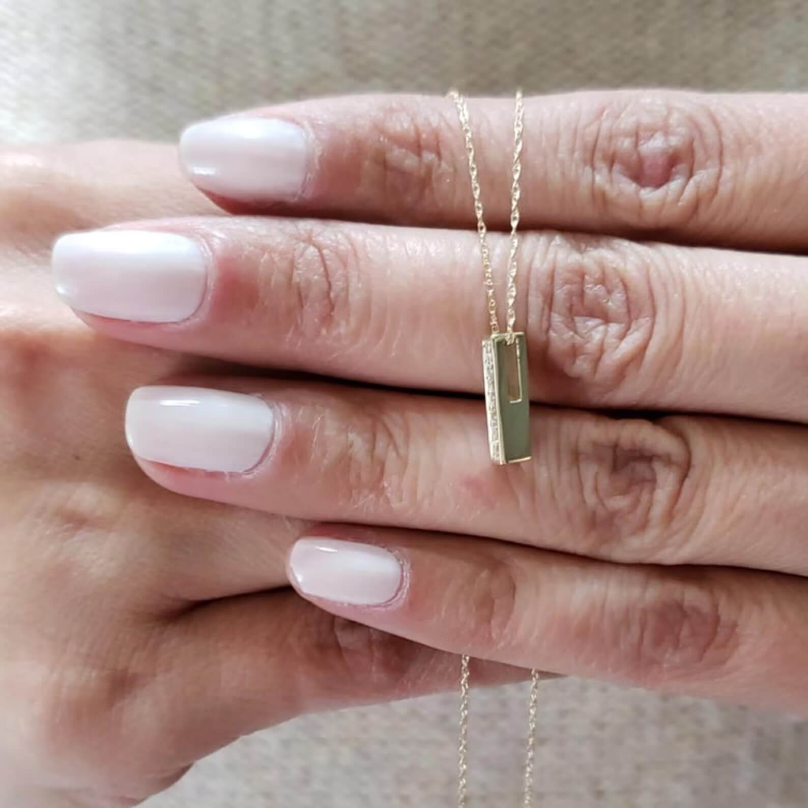 Diese Diamant-Halskette mit Barren ist in einer 14-karätigen Goldfassung mit Diamantanhänger erhältlich. Der Diamant ist ein echter, im Labor gezüchteter Diamant und verleiht jedem Look einen eleganten und edlen Touch. Die Qualität ist durch ein vollständiges Laborzertifikat gesichert – Sie können Ihrer Investition vertrauen.