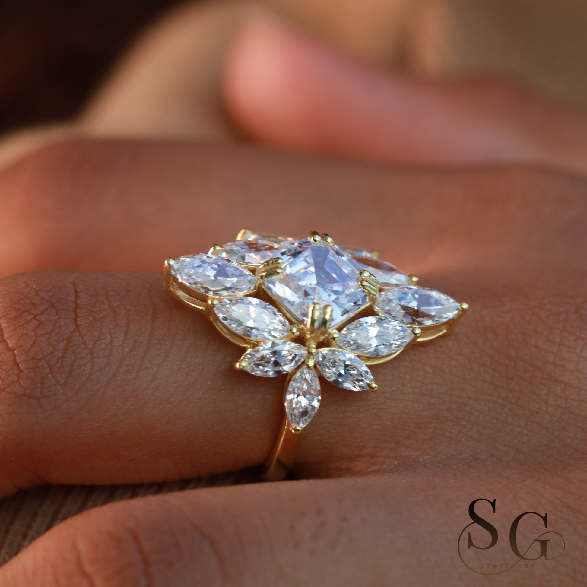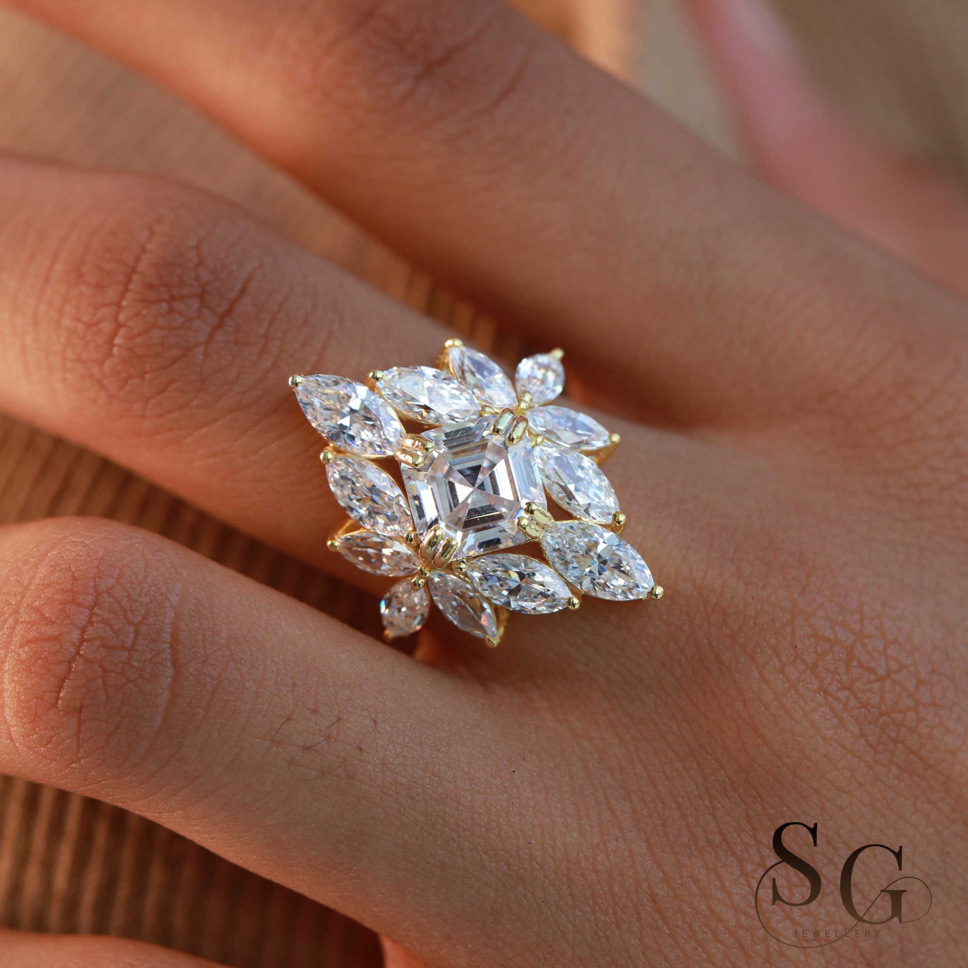 2,66 Karat handgefertigter Verlobungsring mit im Labor gezüchtetem Diamanten im Asscher-Schliff