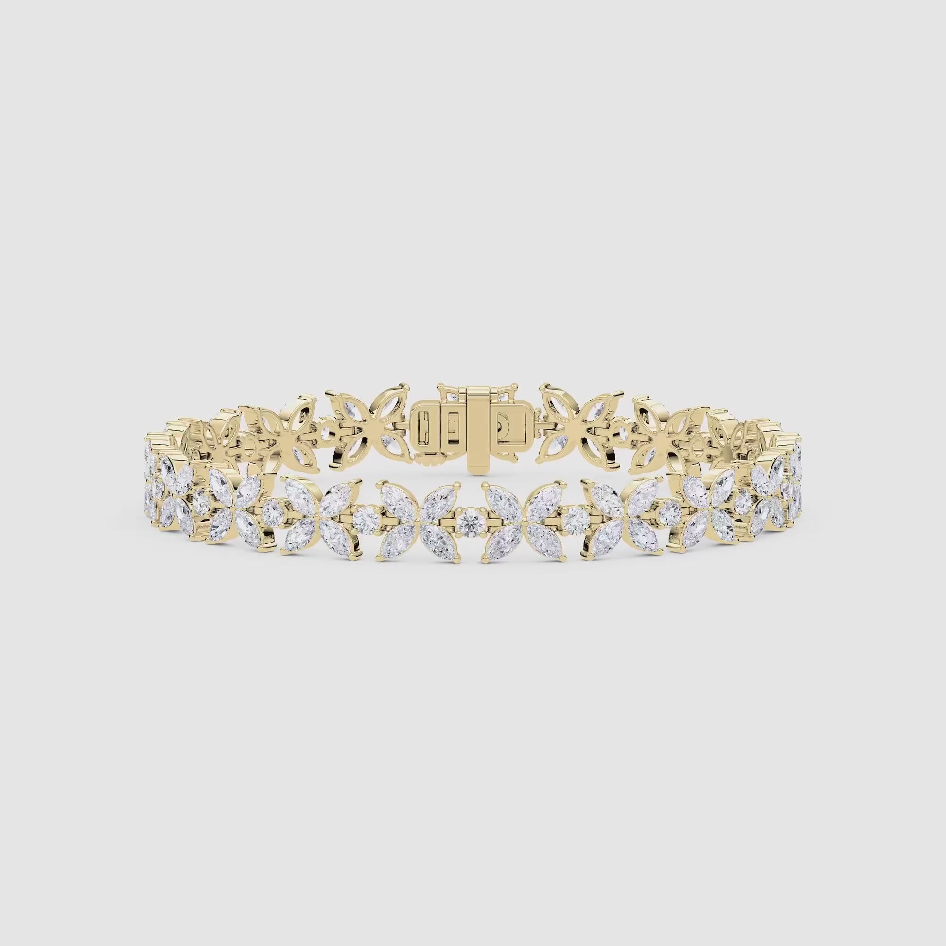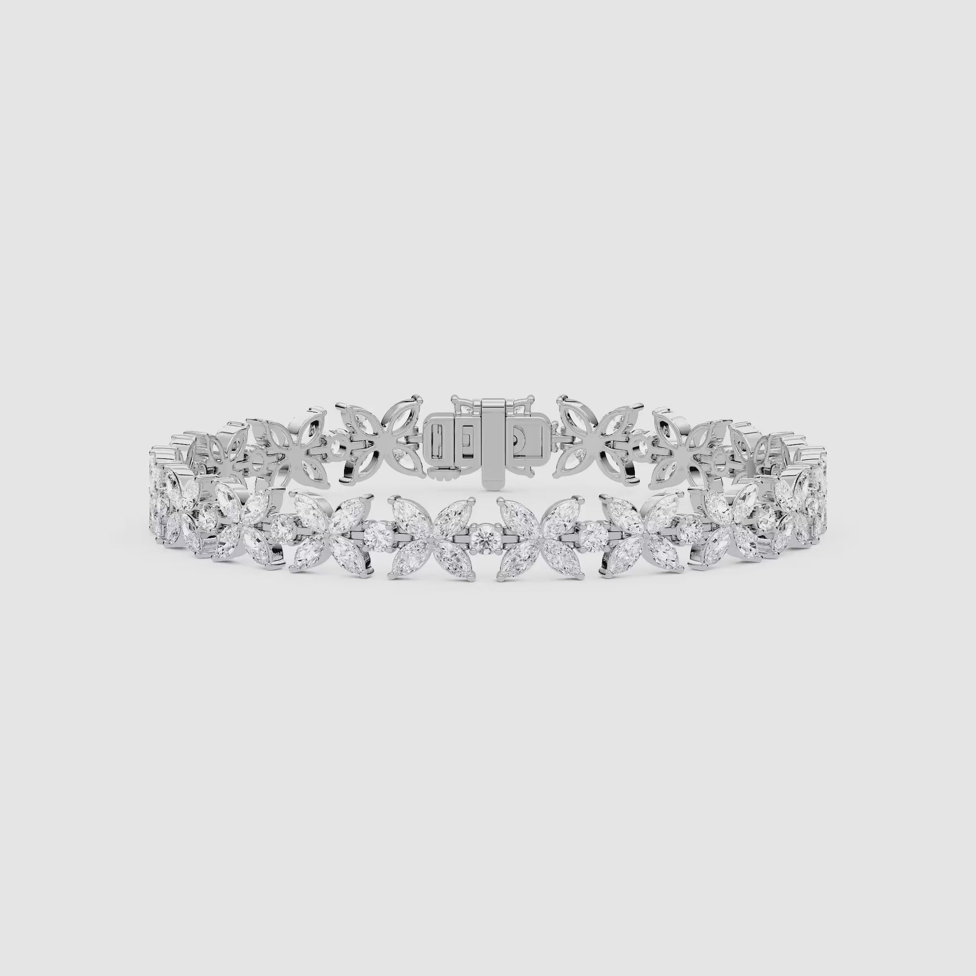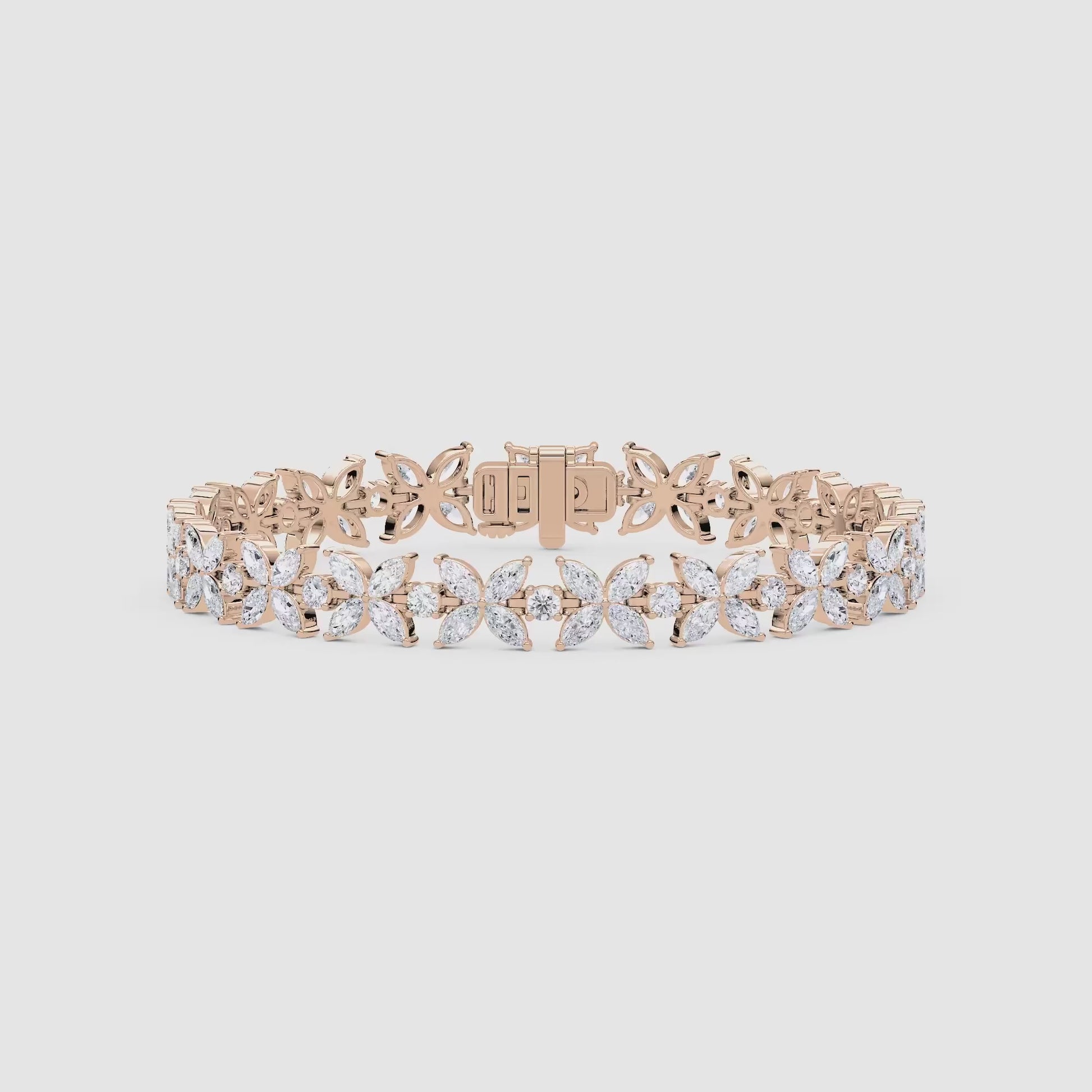 Das 5,5 Zoll große, im Labor gezüchtete Armband mit runden und Marquise-Diamanten besticht durch eine atemberaubende Kombination aus runden und Marquise-Diamanten, die zu eleganten floralen Mustern angeordnet sind. Erhältlich in 14 Karat Weiß-, Gelb- und Roségold, bietet dieses Armband zeitlose Schönheit und Raffinesse.