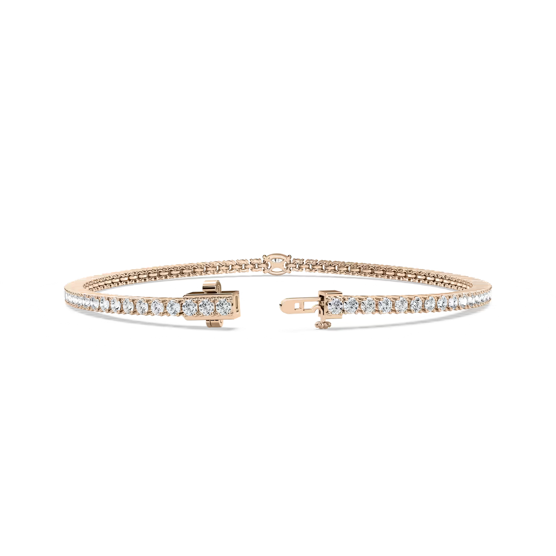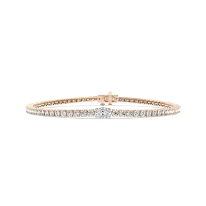 Entdecken Sie wahren Luxus mit unserem 14 cm langen, im Labor gezüchteten Diamantarmband. Es besticht durch einen wunderschönen ovalen Diamanten, umgeben von einer Auswahl runder Diamanten. Gefertigt aus 14 Karat Weiß-, Gelb- und Roségold, strahlt dieses Armband zeitlose Eleganz und Glanz aus.