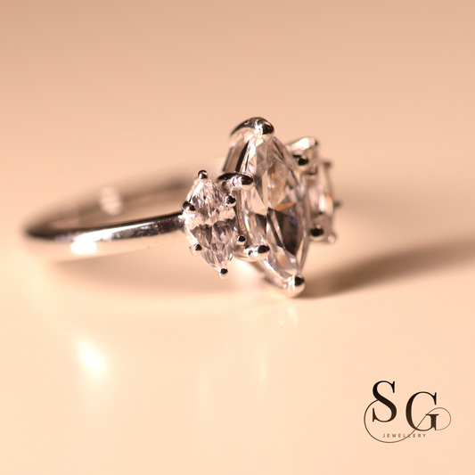 Marquise Cut Lab Grown Three Diamond Ring