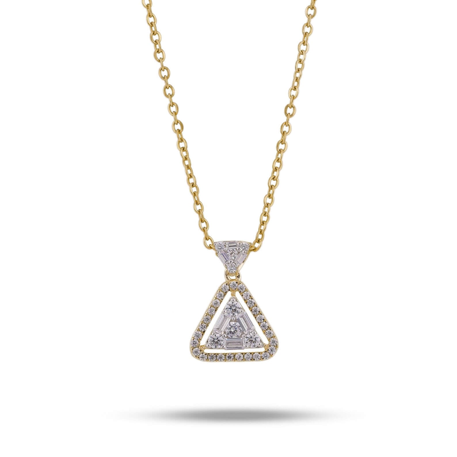 14K Gold Baguette and Round Diamond Illusion Setting Charm Pendant Necklace, perfect for a dainty diamond accessory. This pendant necklace is crafted with a secure and sturdy setting, making it perfect for everyday wear. The diamonds are ethically sourced and conflict-free, making it an ethical choice for jewelry lovers.