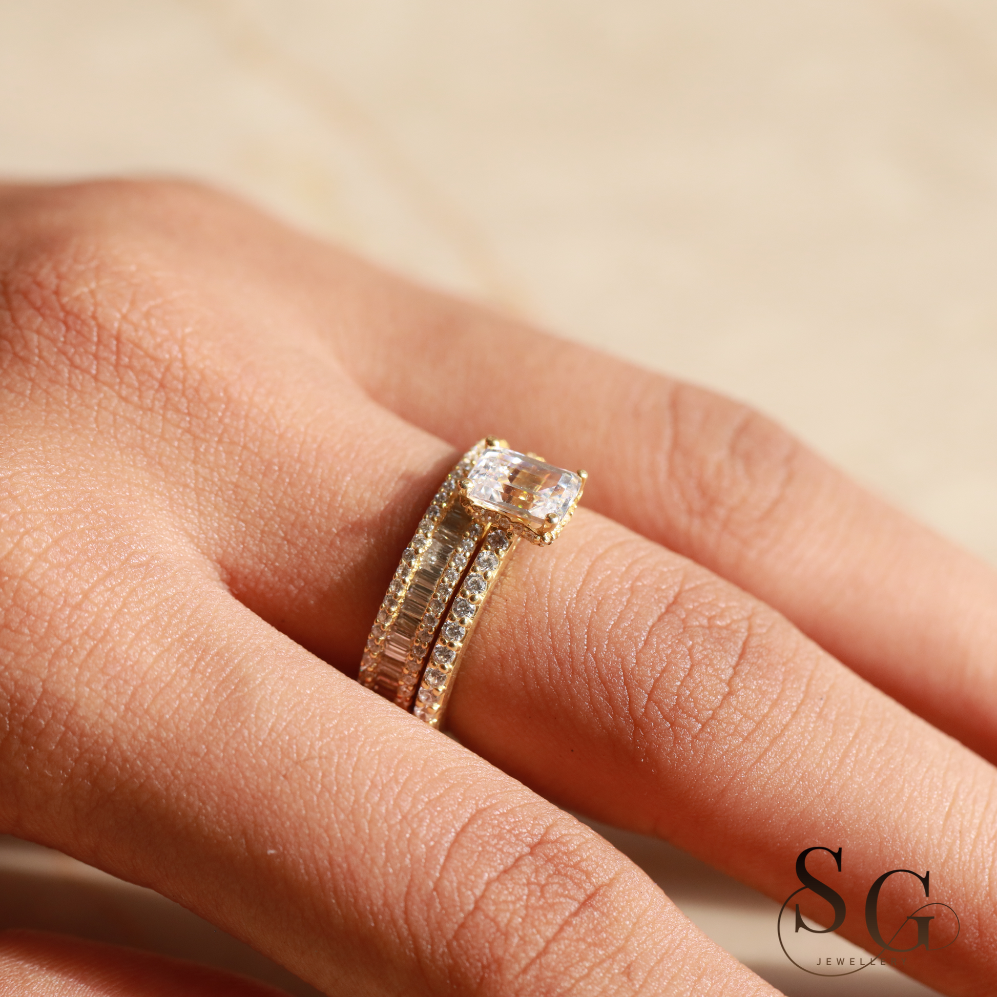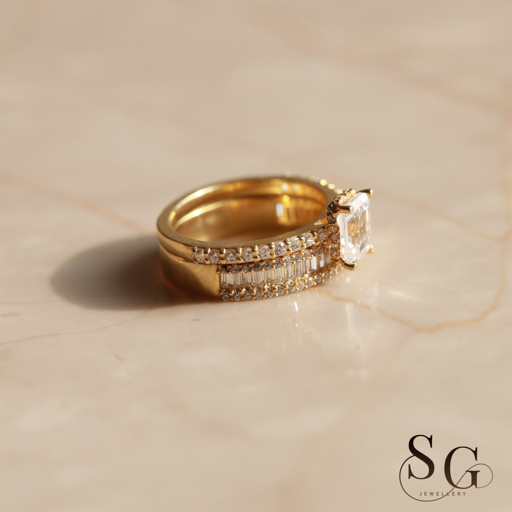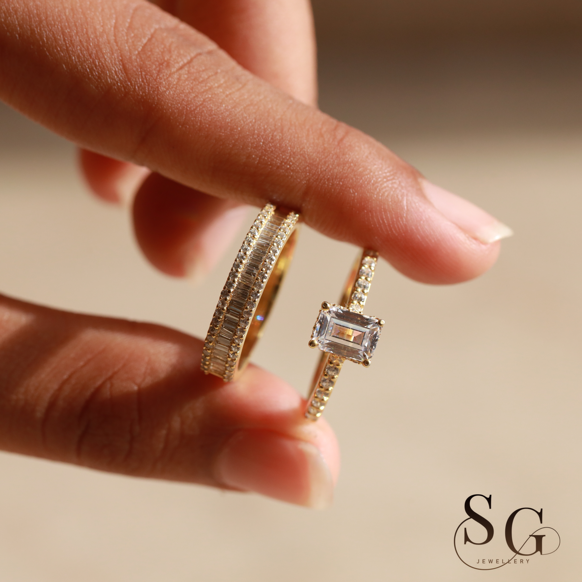 Emerald Cut Lab Grown Diamond Bridal Set Hidden Halo Engagement Ring