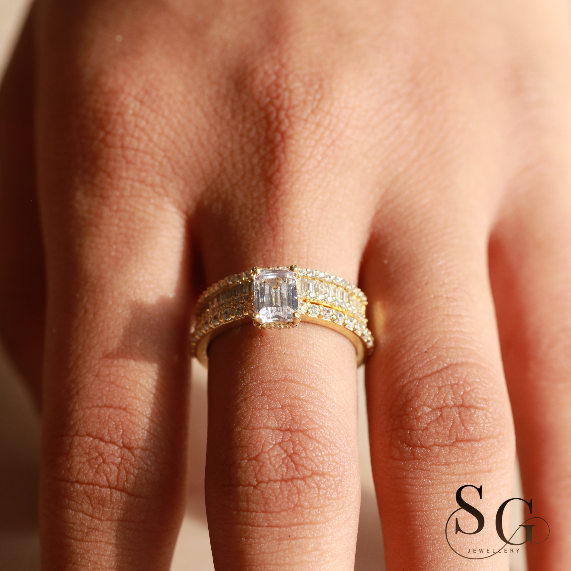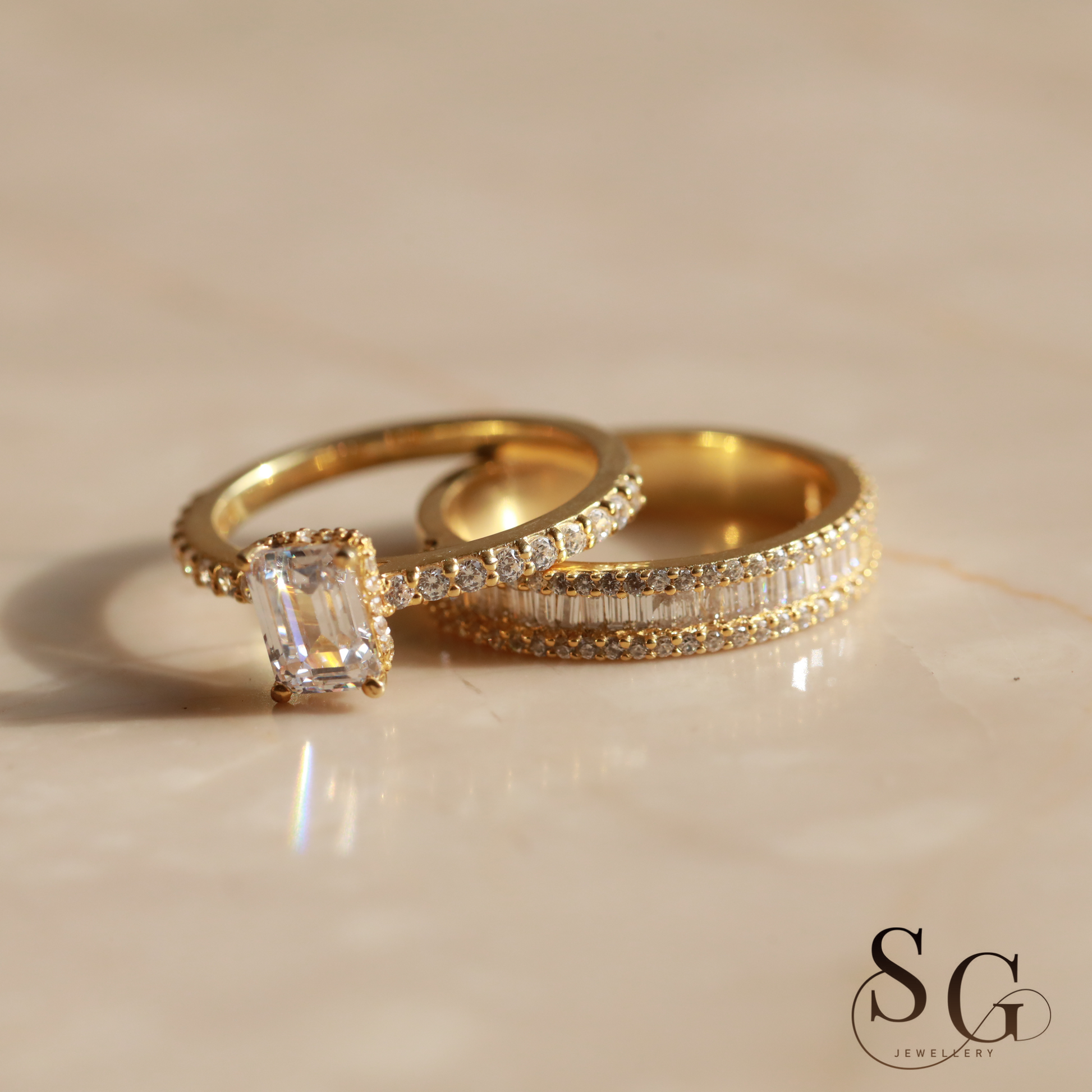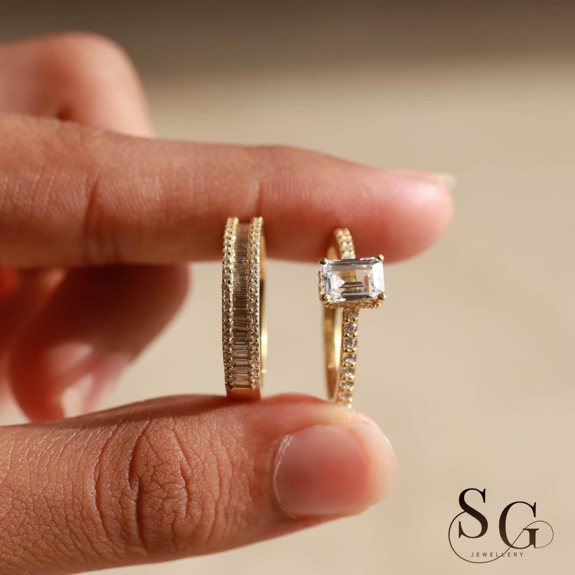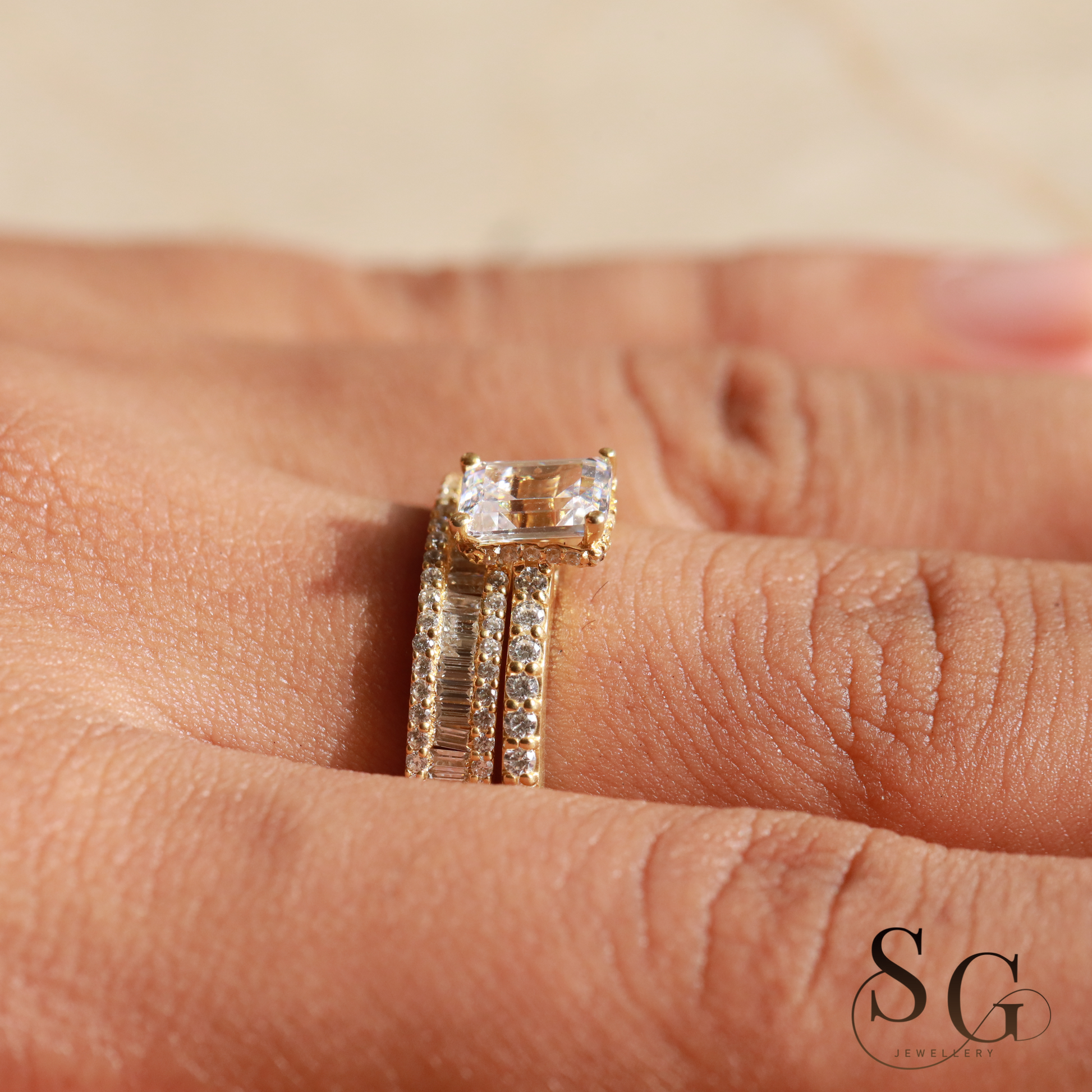 Emerald Cut Lab Grown Diamond Bridal Set Hidden Halo Engagement Ring