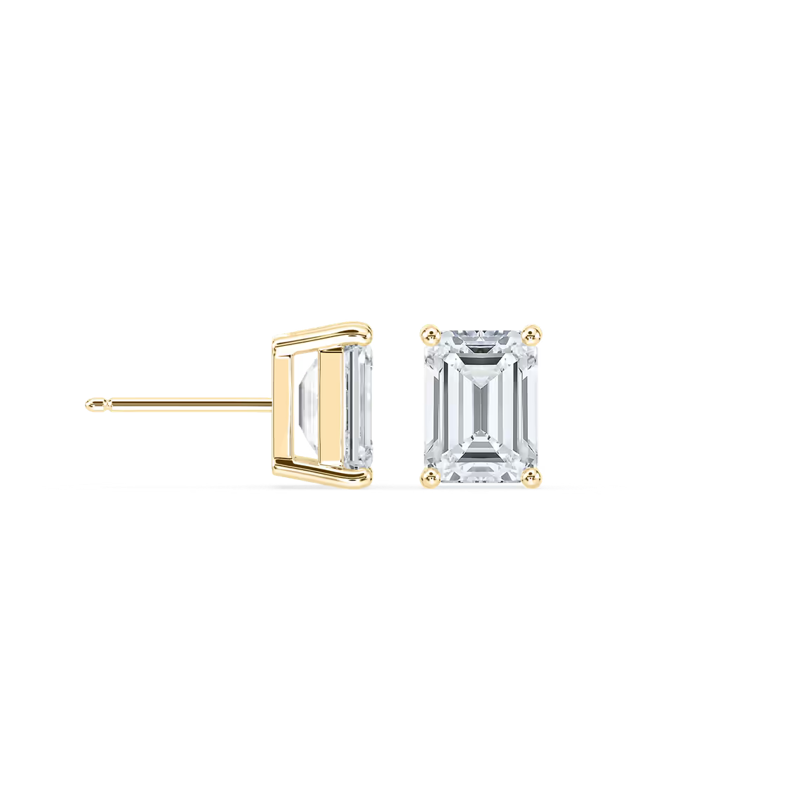 The gorgeous 14-keret gold Lab-Grown Fancy Stud Earrings can be crafted with Emerald cut of fancy stone shape, set in a delicate 4 prong SG setting.