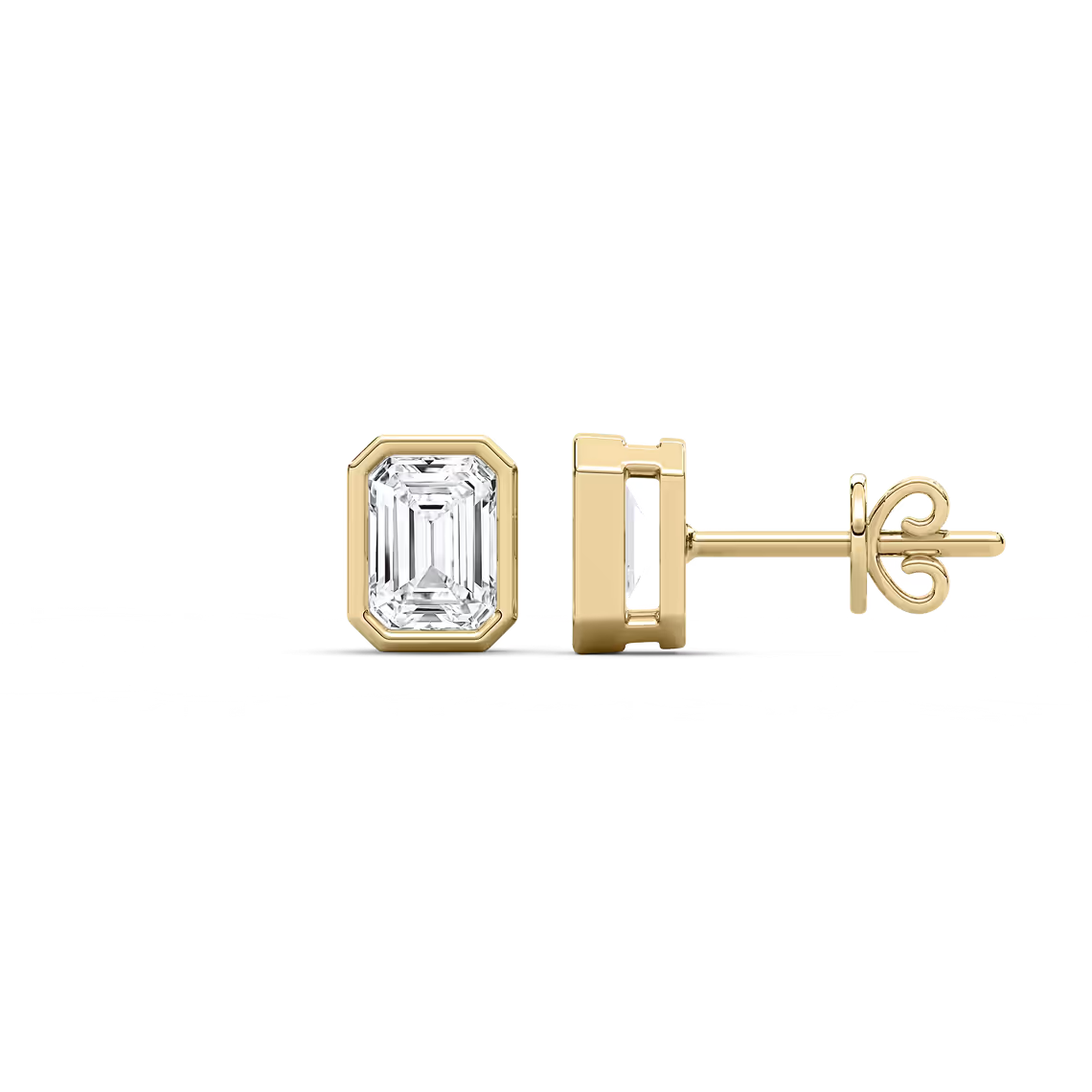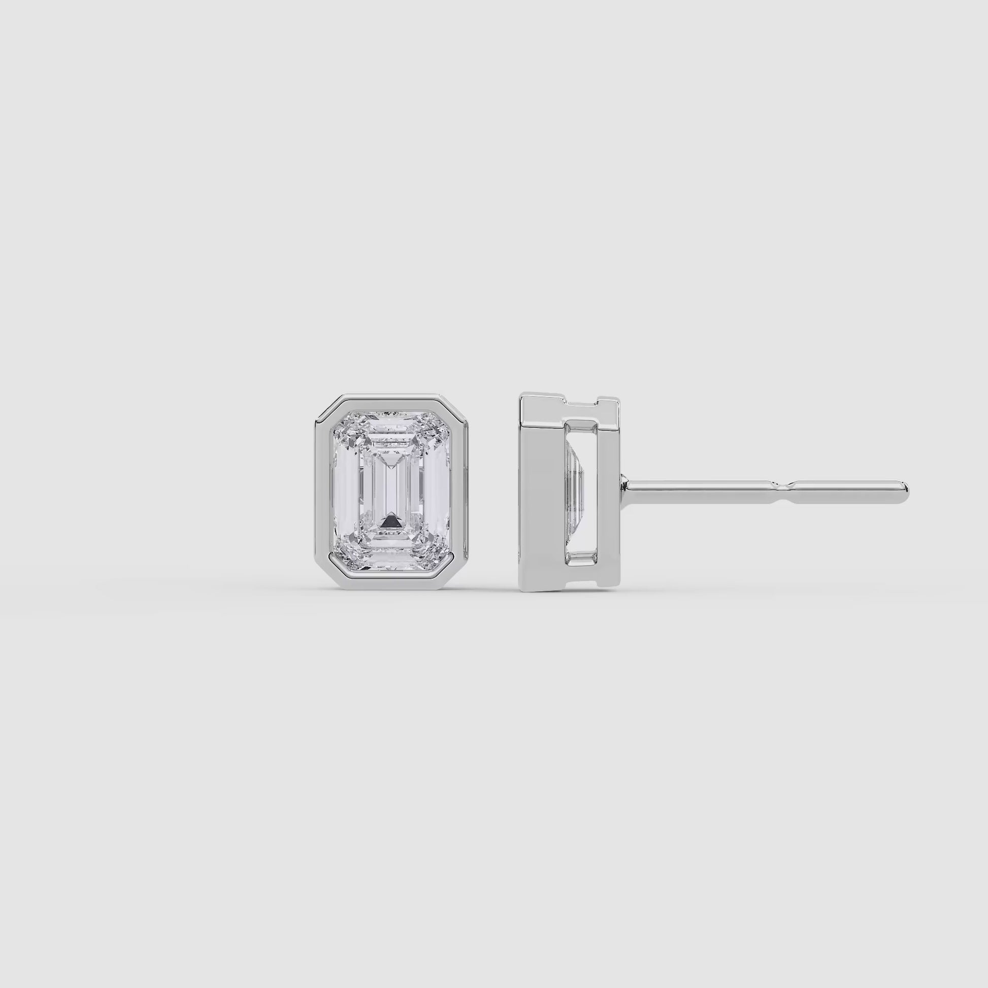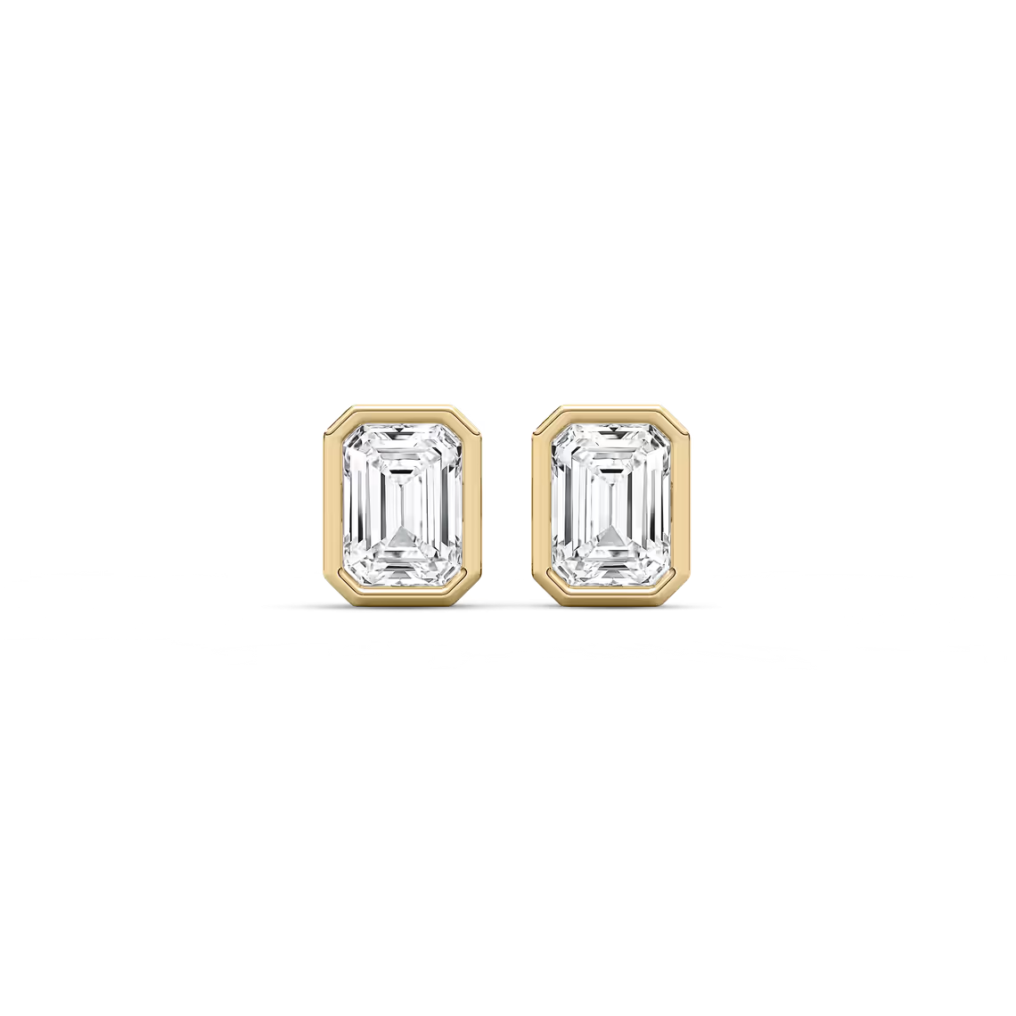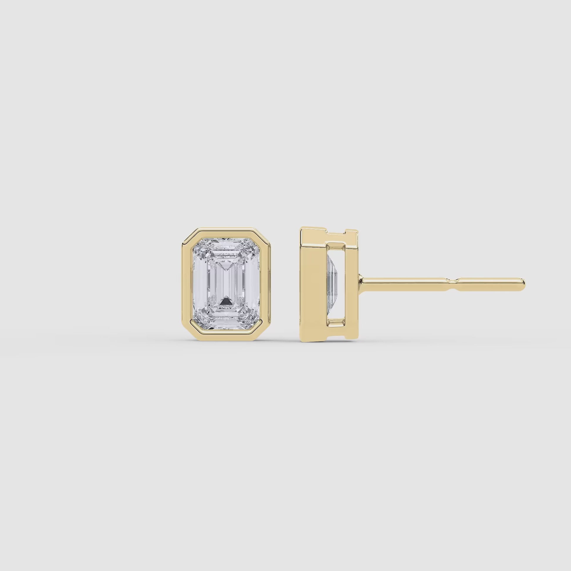 Enhance your look with our Lab-Grown Emerald-Cut Diamond Earrings, set in a sleek bezel setting. Available in 14K White, Yellow, and Rose Gold, these earrings feature stunning emerald-cut diamonds in a variety of carat weights, making them perfect for any occasion.