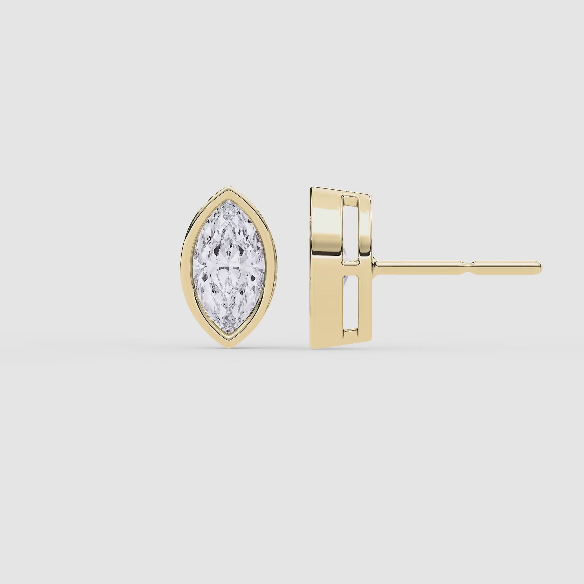 Accentuate your style with our Lab-Grown Marquise-Cut Diamond Earrings. Their bezel setting and varying carat weights make these earrings a truly elegant addition to any ensemble. Available in 14K White, Yellow, or Rose Gold.